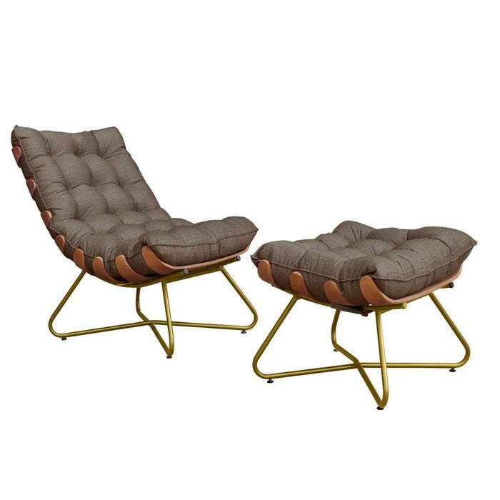 Poltrona Com Puff Costela Eva - Linho Marrom