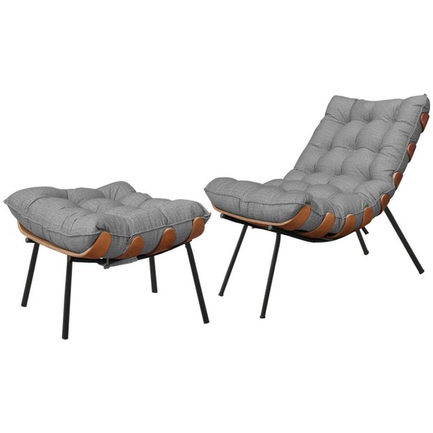 Ver imagem 1 de Poltrona com Puff Costela Sala Quarto Recepção Escritório Esqueleto Base Fixa Linho Cinza