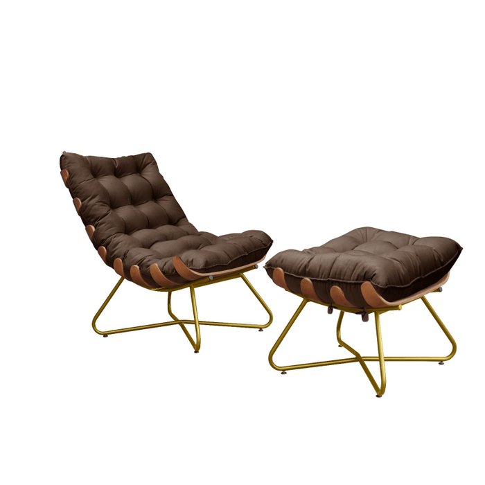 Poltrona Costela com Puff EVA Dourado Mad-Veludo Marrom Jotabe