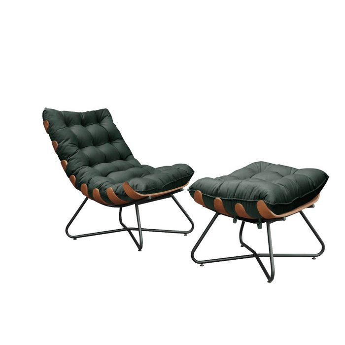 Poltrona Costela com Puff EVA Preto Mad - Veludo Verde Jotabe