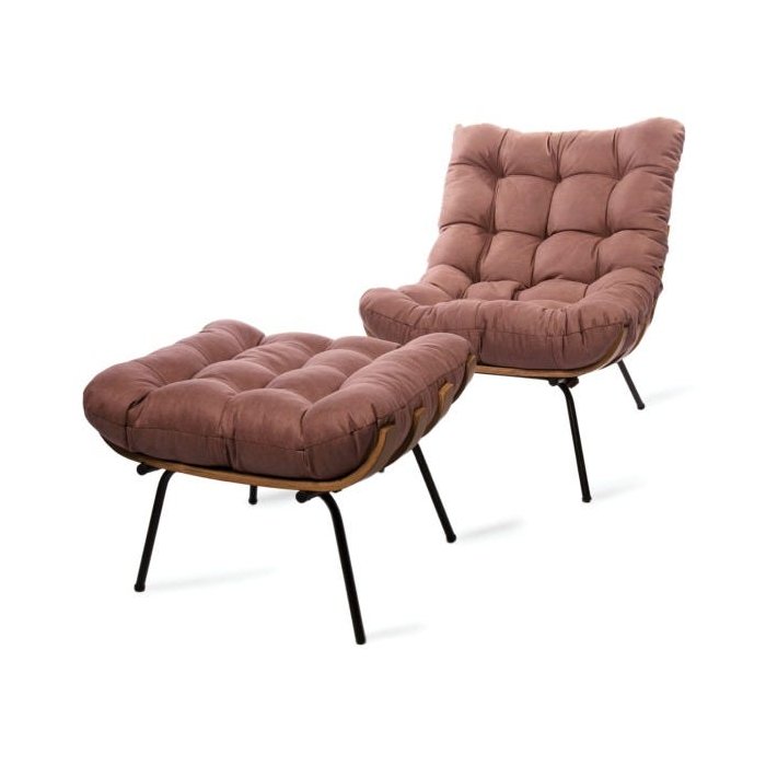 Poltrona Costela com Puff Marrom - Zahav Estofados