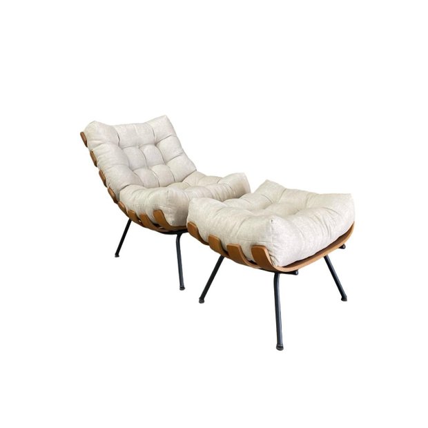 Poltrona Costela G2home + Puff Linho e Costela Multilaminada:bege BEGE