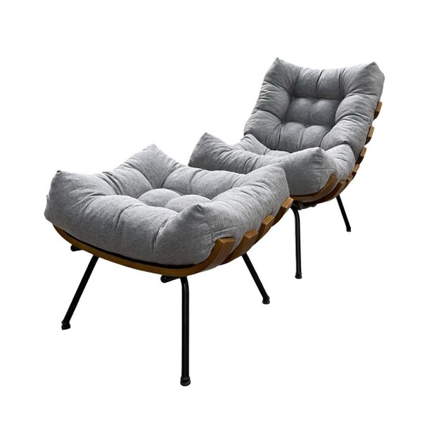 Poltrona Costela G2home + Puff Linho e Costela Multilaminada:cinza CINZA