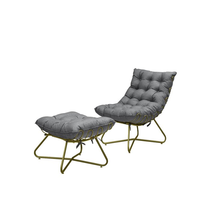 Poltrona Costela Luxo com Puff EVA Dourado - Linho Grafite