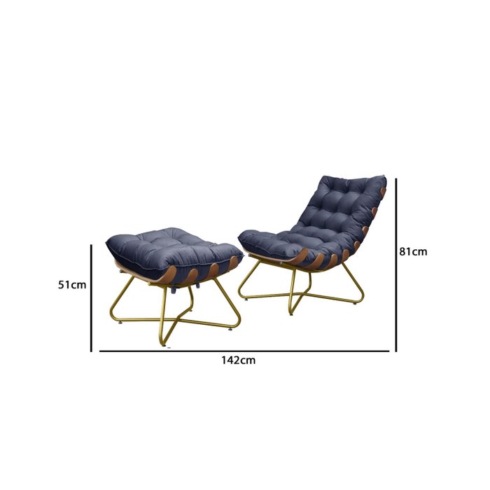 Poltrona Costela Luxo com Puff EVA Dourado Mad - Veludo Azul