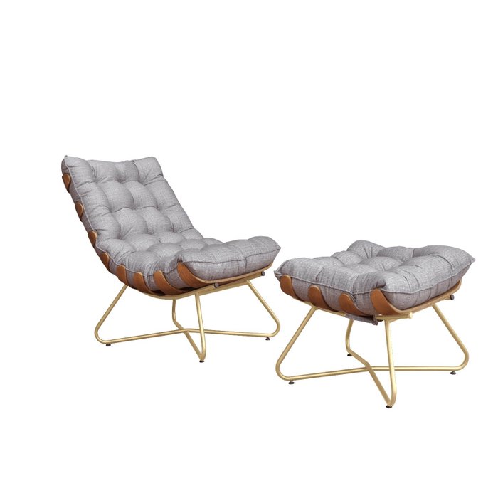 Poltrona Costela Luxo com Puff EVA Dourado Mad-Veludo Cinza