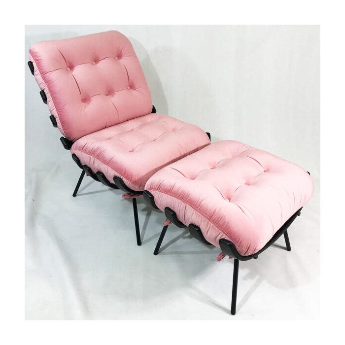 Poltrona Costela Veludo Rosa Candy com Puff rosa
