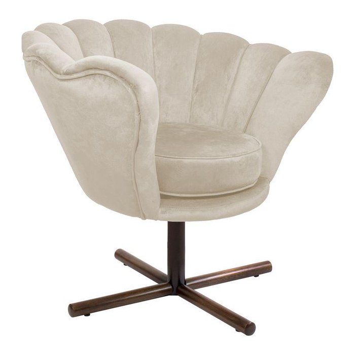 Poltrona Crown Pés Castanho Xis Giratório Veludo Bege Bege
