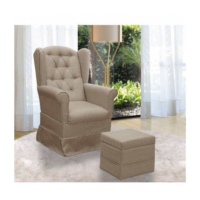 Poltrona de Amamentação Balanço com Puff Mia Bege