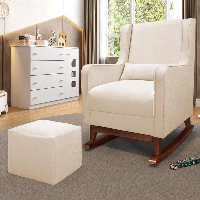 Poltrona de Amamentação Balanço Madeira e Puff Alya Bouclê - D'rossi