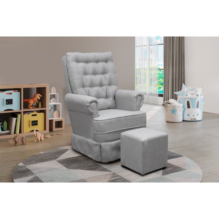 Poltrona de Amamentação Balanço Mavi com Puff Linho Cinza