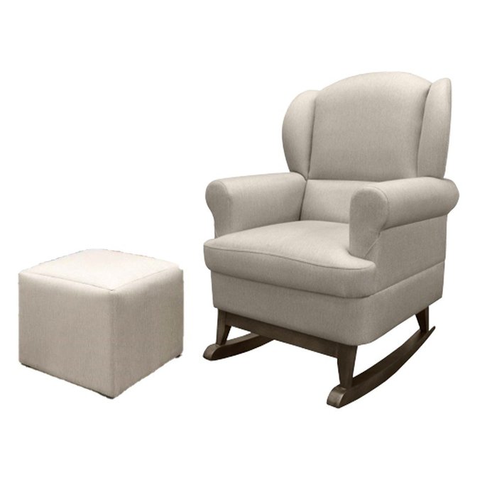 Poltrona de Amamentação Balanço Pés Canoa e Puff Reto Maternidade Sabrina Bege Linho - Phoenix Baby