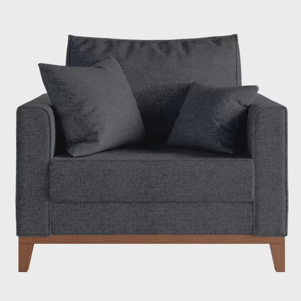 Poltrona de Amamentação Beny Luxo Base E Pés Madeira Maciça Linho Grafite