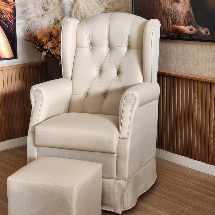Poltrona de Amamentação com Balanço e Puff Luna em Linho Bege- Larbelle Bege