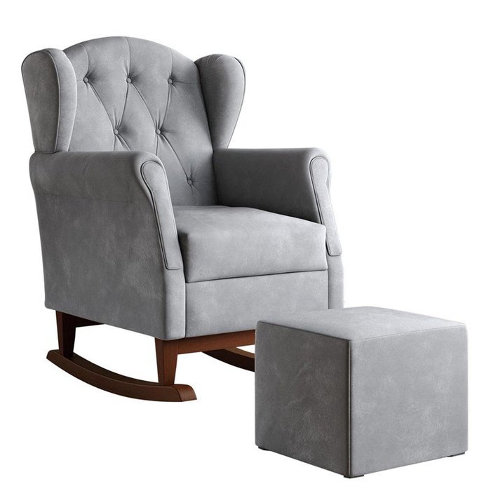 Poltrona de Amamentação com Balanço Letícia Pé Canoa e Puff Veludo Cinza - Phoenix Baby