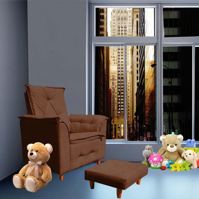 Poltrona de Amamentação com Puff para Os Pes Laura Terra Cota Marrom