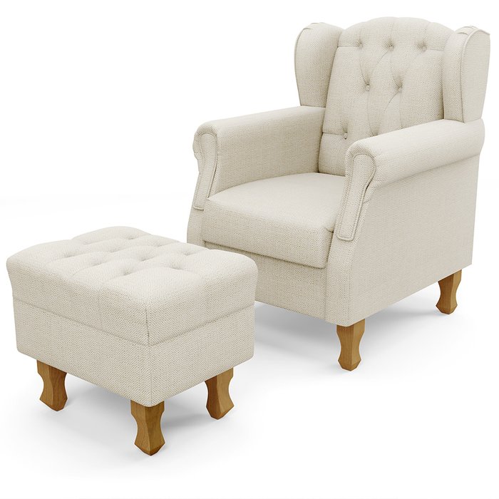 Poltrona de Amamentação Yara P02 Com Puff Paris Luis Xv L02 Linho Champagne - Lyam Decor