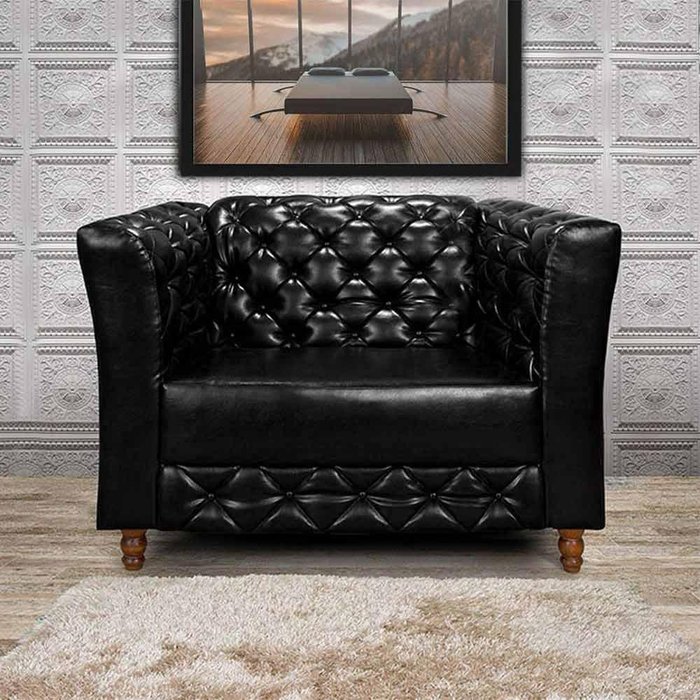 Características Dimensões do sofá: Largura: 1,13M; Profundidade 0,86M; Altura 0,89M Itens Inclusos: 1 poltrona Chesterfield. Descrição Técnica Estrutura em eucalipto reflorestado Material: Couríssimo Espuma do assento: Densidade 28 Espuma dos braços: Densidade 28 Espuma do encosto: Densidade 20 Pés em madeira maciça envernizados e torneados Altura do assento ao chão: 45cm Assento em percintas italianas Encosto em capitonê artesanal Montagem do produto: Apenas fixação dos pés. Recomendações de uso, manutenção e limpeza: Limpar com flanela ou pano macio seco, não utilizar produtos abrasivos, desengordurantes, álcool ou solvente. Não expor o produto diretamente a luz solar e à umidade Garantia : 3 meses Altura: 89 | Tonalidade: Preto | Cor: Preto | Quantidade de lugares: 2 | Peso do Produto: 200 | Produto: 7891903821464 | Largura: 113 | Garantia do Fabricante: 3 | store_stock_cross_docking: 25 | Acompanha Almofada: Não | Acompanha braço: Sim | Comodo indicado: Salas | Material da estrutura: Courissimo | Peso Montado: 56 | Profundidade Montado: 86 | Largura Montado: 113 | Altura Montado: 89