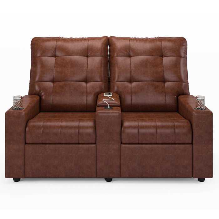 Poltrona de Cinema Reclinável 2 Lugares Baú Usb Mallie Fh9 Pu Marrom Brilho - Mpozenato