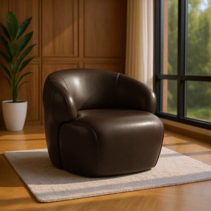 Com seus braços integrados e função giratória, a Poltrona Gana apresenta um design moderno e fluido, que oferece praticidade e movimento. Feita de couro 100% legítimo, ela garante resistência, durabilidade e sofisticação. Ideal para salas de estar, recepções ou escritórios, seu formato ergonômico proporciona conforto excepcional. Uma peça versátil que se adapta a diferentes ambientes com elegância.