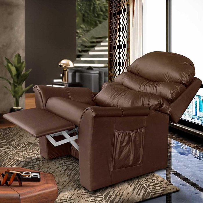 Poltrona De Descanso Reclinável Corino Marrom Hexa Shop JM