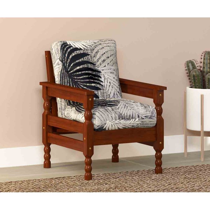 Poltrona De Madeira Maciça Com Almofada Castanho