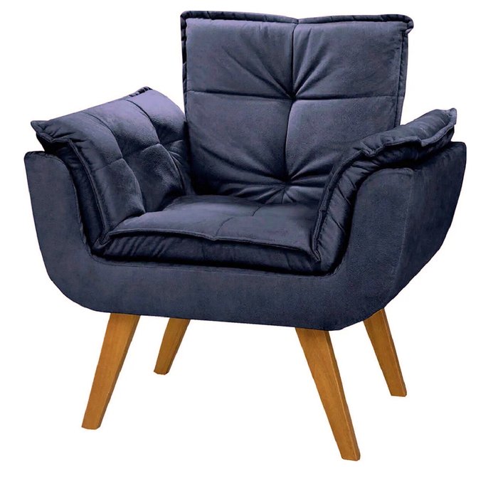 Poltrona Decorativa 04 Pés Palitos Aline Suede Azul Azul