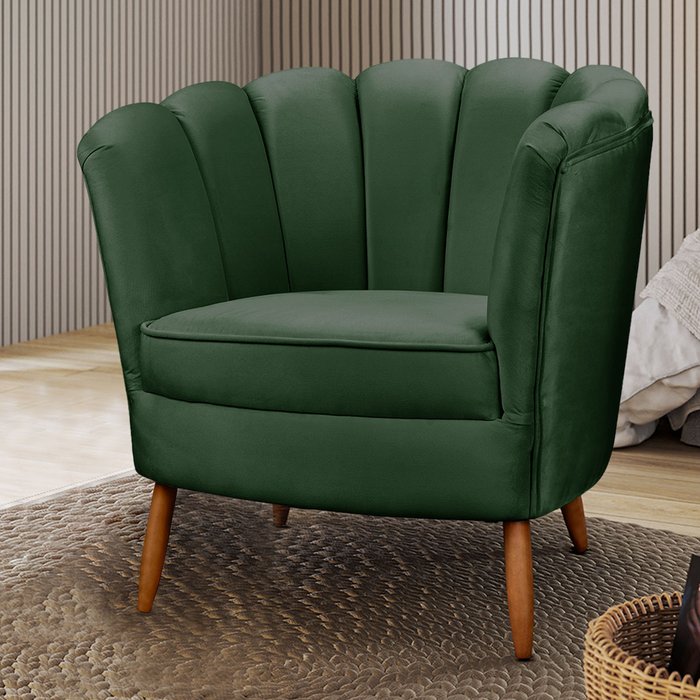 Poltrona Decorativa Ariel Petala com Pés de Madeira - Star Confort Poltrona Ariel Verde