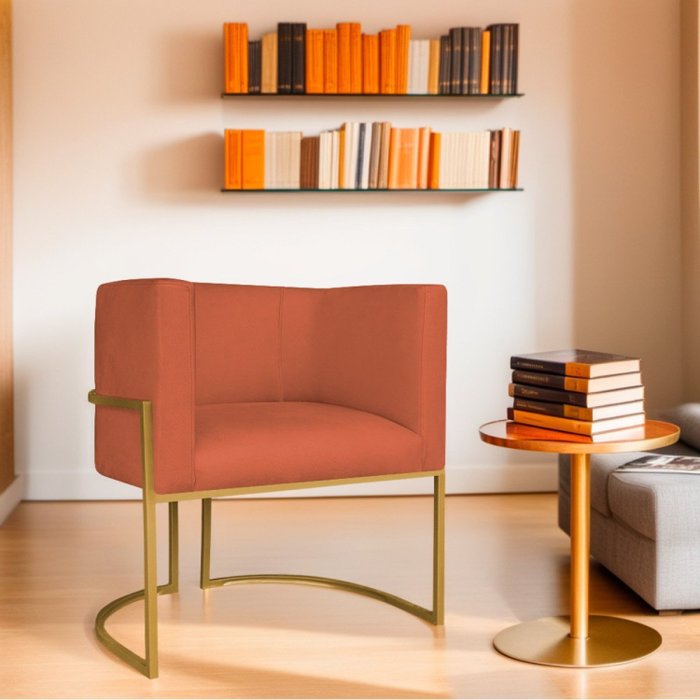 Poltrona Decorativa Base de Ferro Suede Munique Terracota/Dourado
