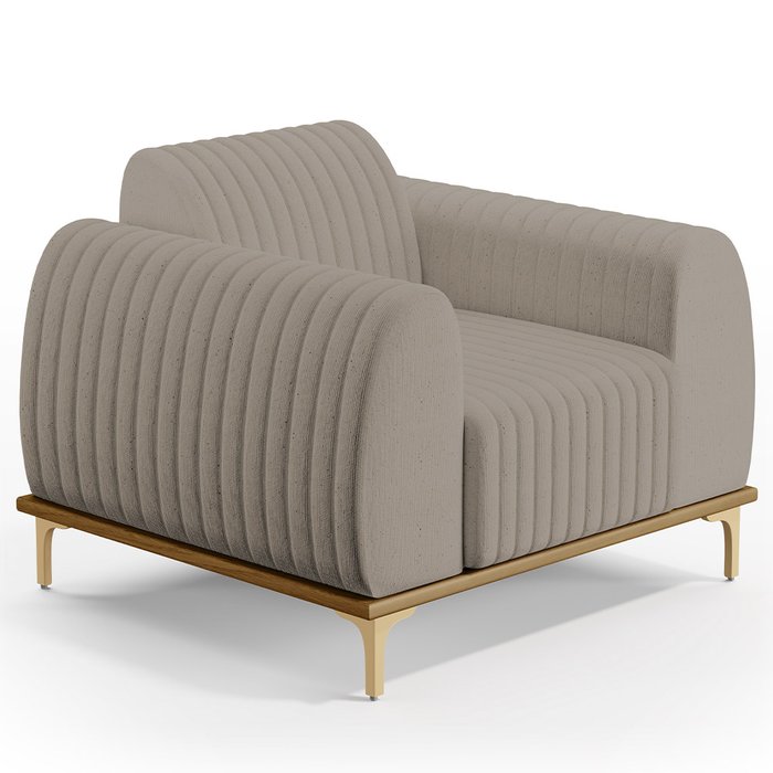 Poltrona Decorativa Base De Madeira Pés Metalizado D'Ouro Molino D02 Linho Bege C-107 - Lyam Decor