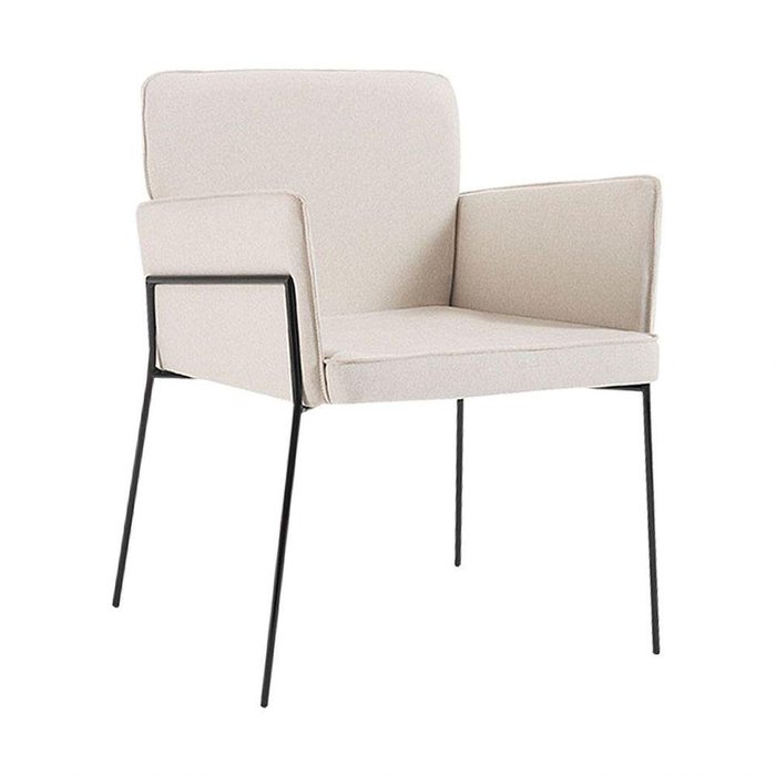 Poltrona Decorativa Base Em Aço Preto Barry Linho Bege - Gran Belo