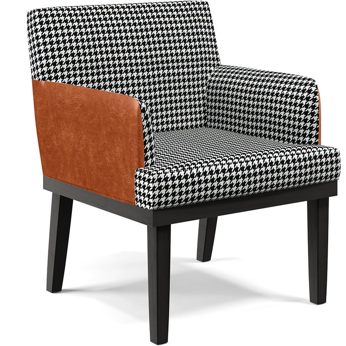 Poltrona Decorativa Base Tabaco Beatriz W01 Suede Pied Poule Couríssimo Camel - Lyam Decor Tabaco