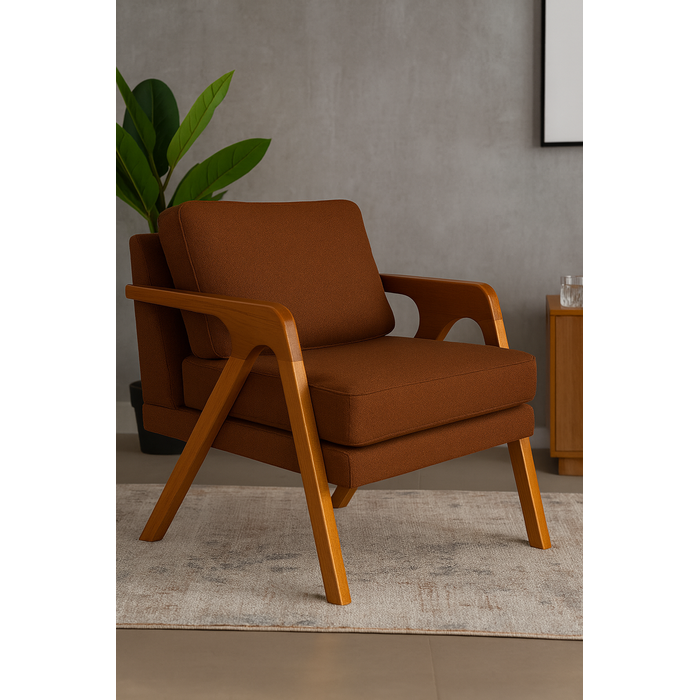 Poltrona Decorativa Braço de Madeira Linho Mona Terracota