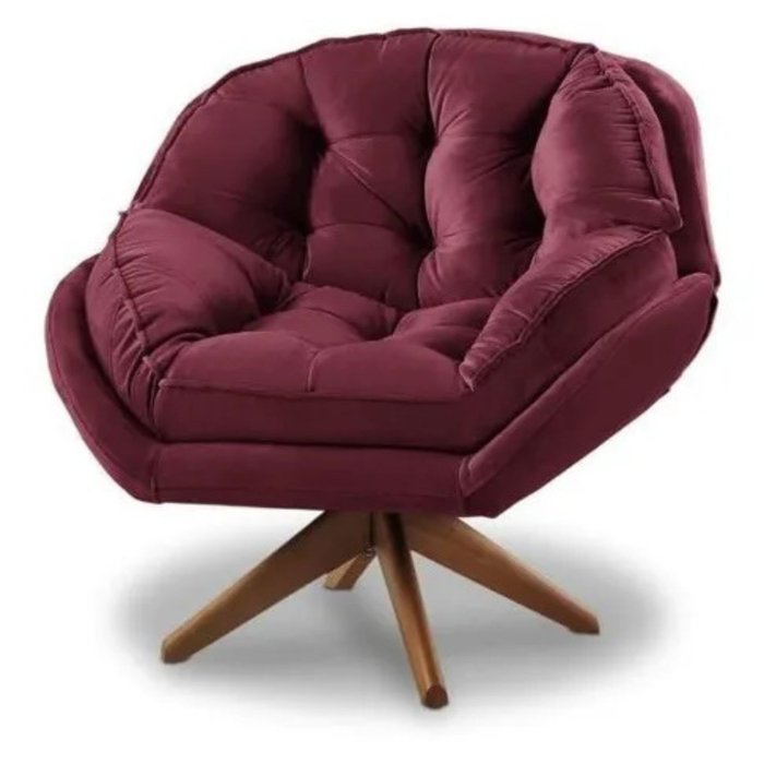 Poltrona Decorativa Califórnia Base de Madeira Giratória Veludo Bordo