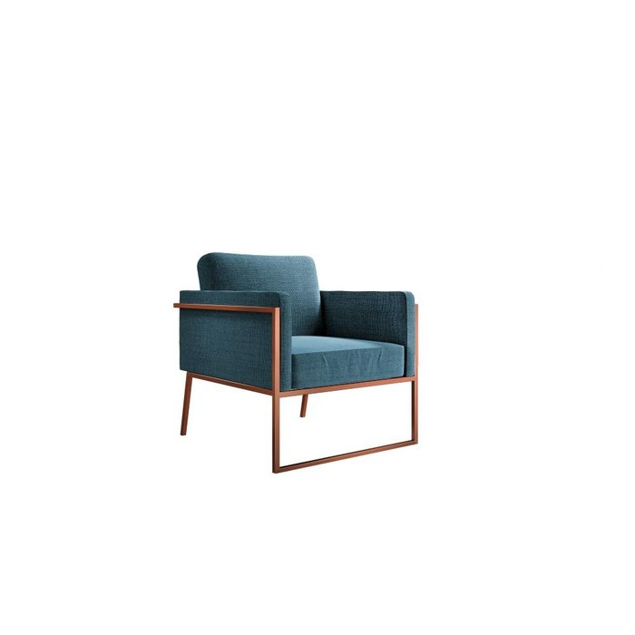 Poltrona Decorativa CM10 Carolina Mobilia - Linho Azul/Cobre