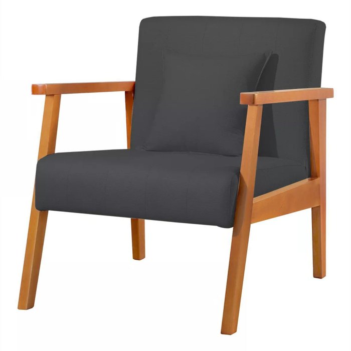 Poltrona Decorativa com Almofada para Sala Braço em Madeira Linho Preto