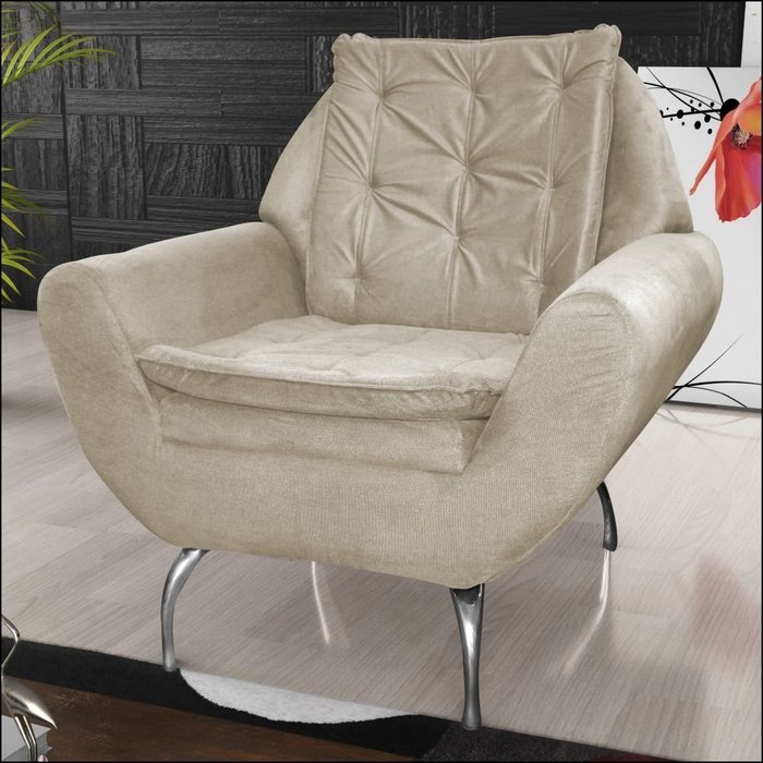 Poltrona Decorativa com Pés de Alumínio Glória Bege