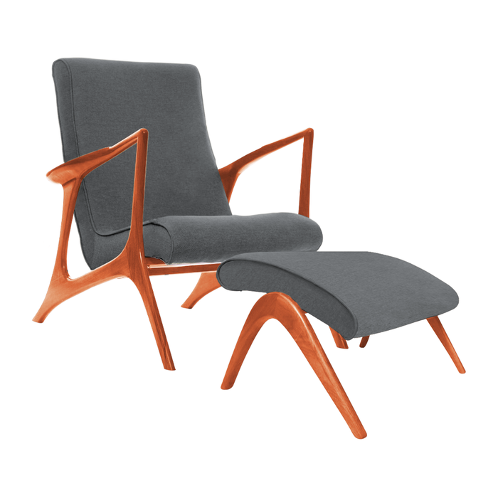 Poltrona Decorativa com Puff Vk Anos 50 Tecido Linho Cinza