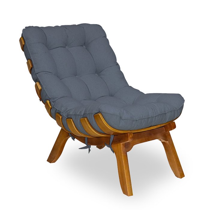 Poltrona Decorativa Costela Base Madeira Linho Chumbo Chumbo