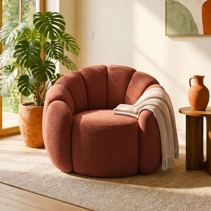 Poltrona Decorativa Curva Orgânica Serena Bouclê Terracota - Montanari's Decor Terracota