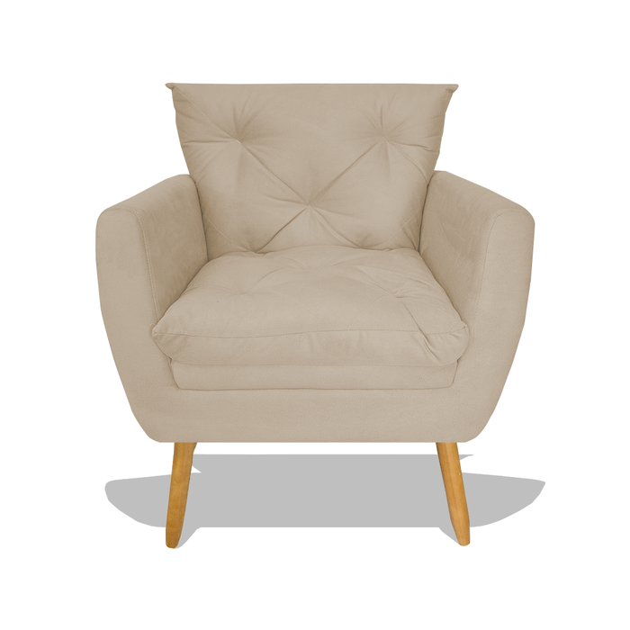 Poltrona Decorativa Emily Suede Bege Pés Madeira - Siloé Decor