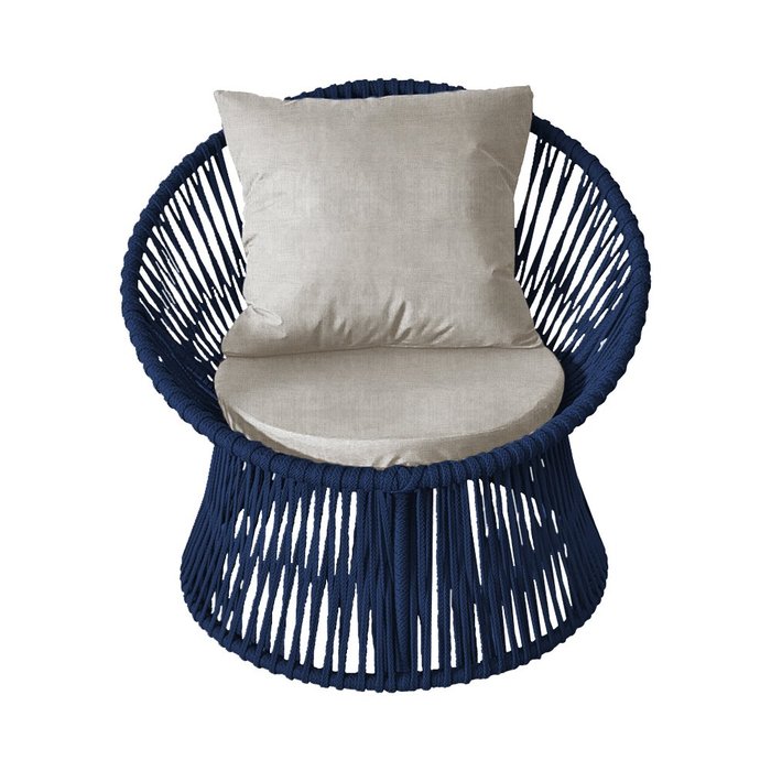 Poltrona Decorativa Estofada Sol com Almofada em Corda Náutica e Base em Alumínio Cinza/azul Marinho AZUL