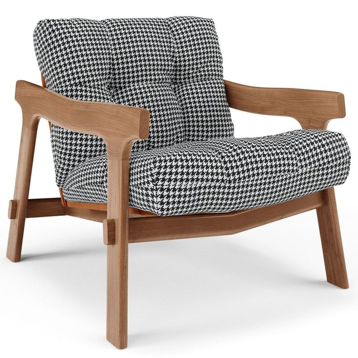 Poltrona Decorativa Fixa para Sala Living Ikary L02 Canela Pied Poule - Lyam Decor