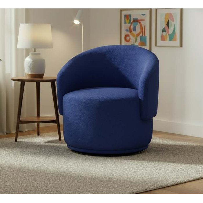 Poltrona Decorativa Giratória Sala de Estar Recepção Jasmine Linho Azul Royal