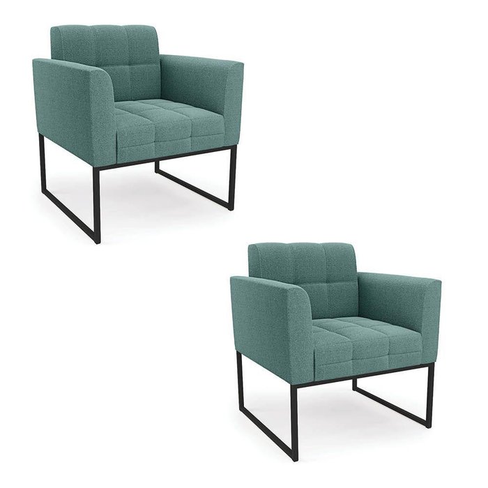 Poltrona Decorativa Industrial Preto Kit 2 Elisa Bouclê Verde Ment D03 - D'rossi