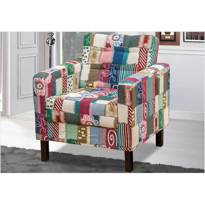 Poltrona Decorativa Isadora Pés de Madeira - Fratello - Retalho Colorido