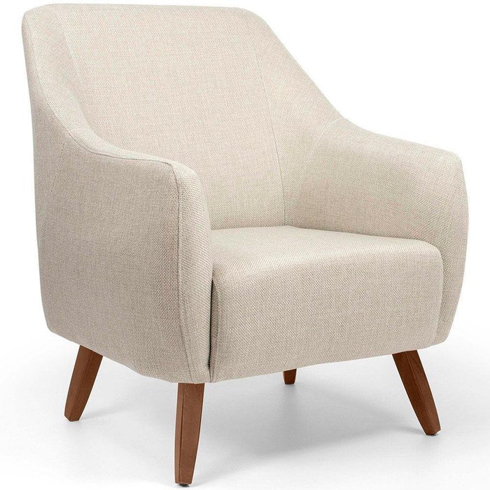 Poltrona Decorativa La Paloma Pés Madeira Linho Rústico Bege Bege