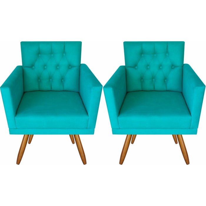 Poltrona Decorativa Larah Escritório Capitonê Azul Turqueza Azul Turqueza