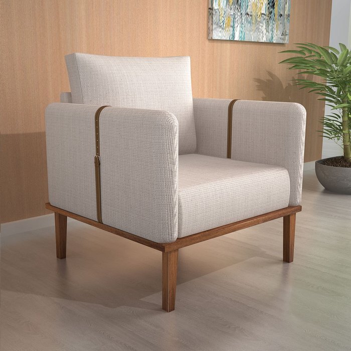 Poltrona Decorativa Linho Madeira Maciça Parma Bom Pastor Linho Bege