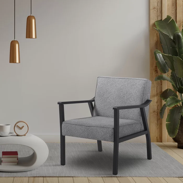 Poltrona Decorativa Madeira Maciça Jequitibá Assento com Persintas Elásticas Antônia Preto/Cinza